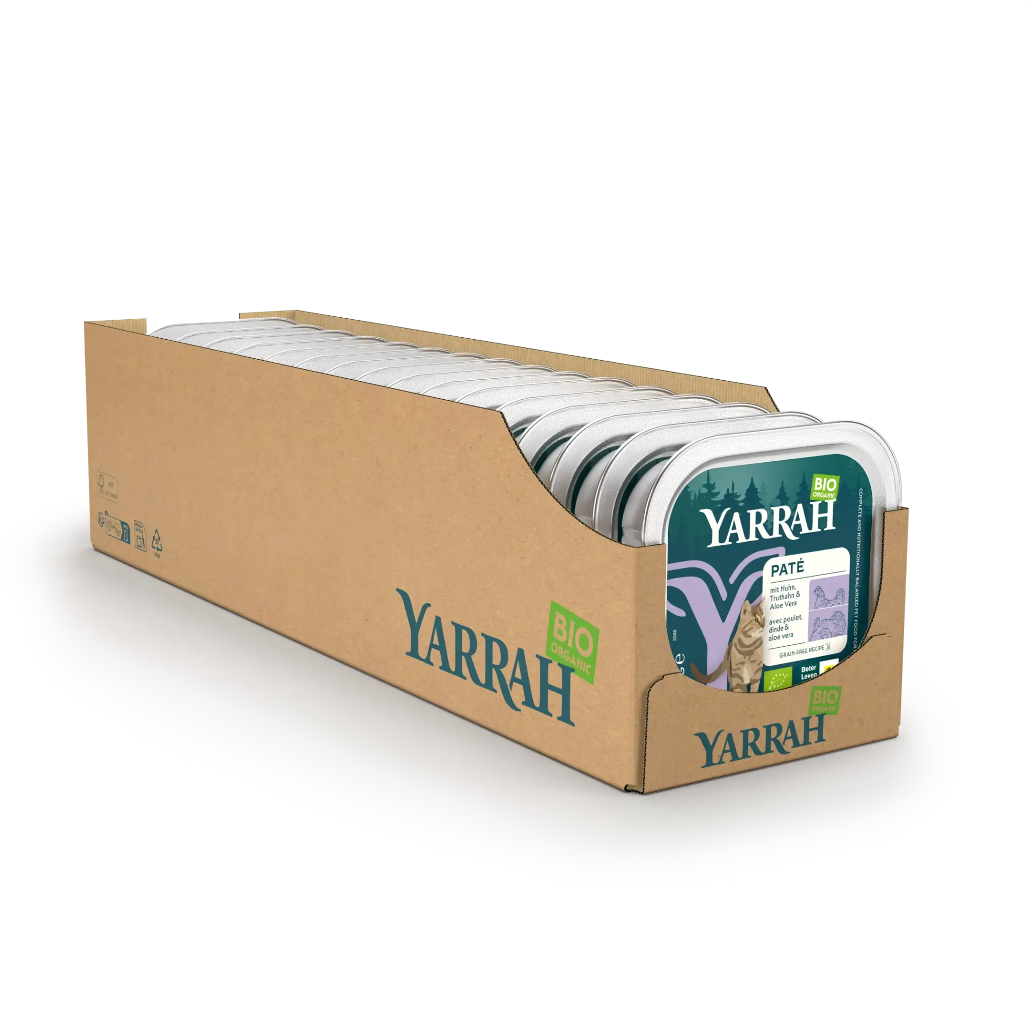 Grain-free pâté made from organic chicken and turkey, supplemented with certified organic aloe vera. This organic wet food forms a complete, nutritious, and oh-so-delicious meal for your cat. It's pure organic food, which means no chemical fragrances, colourings, or aromas, no added pesticides or GMOs, and only the best absorbable proteins. So your cat gets exactly what they need.